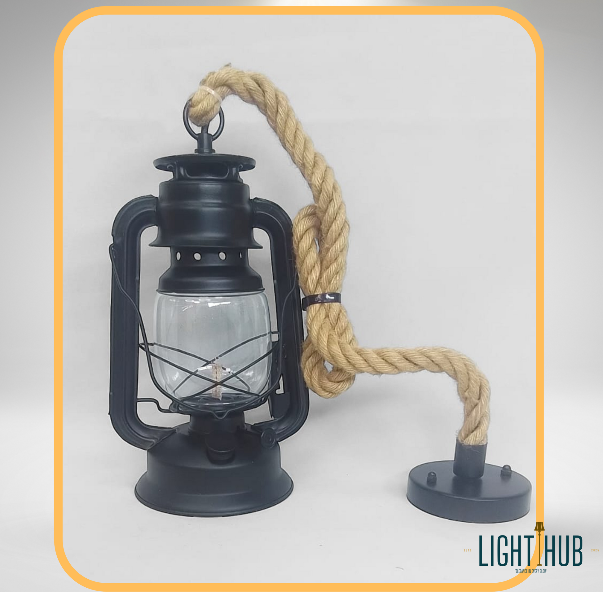 La suspension LUMORA est dotee d une structure robuste en metal avec une finition vieillie et est suspendue par une epaisse corde torsadee pour un style authentique. De couleur noire ce luminaire a lumiere unique dirige son faisceau vers le bas creant un eclairage focalise et une ambiance chaleureuse et accueillante.