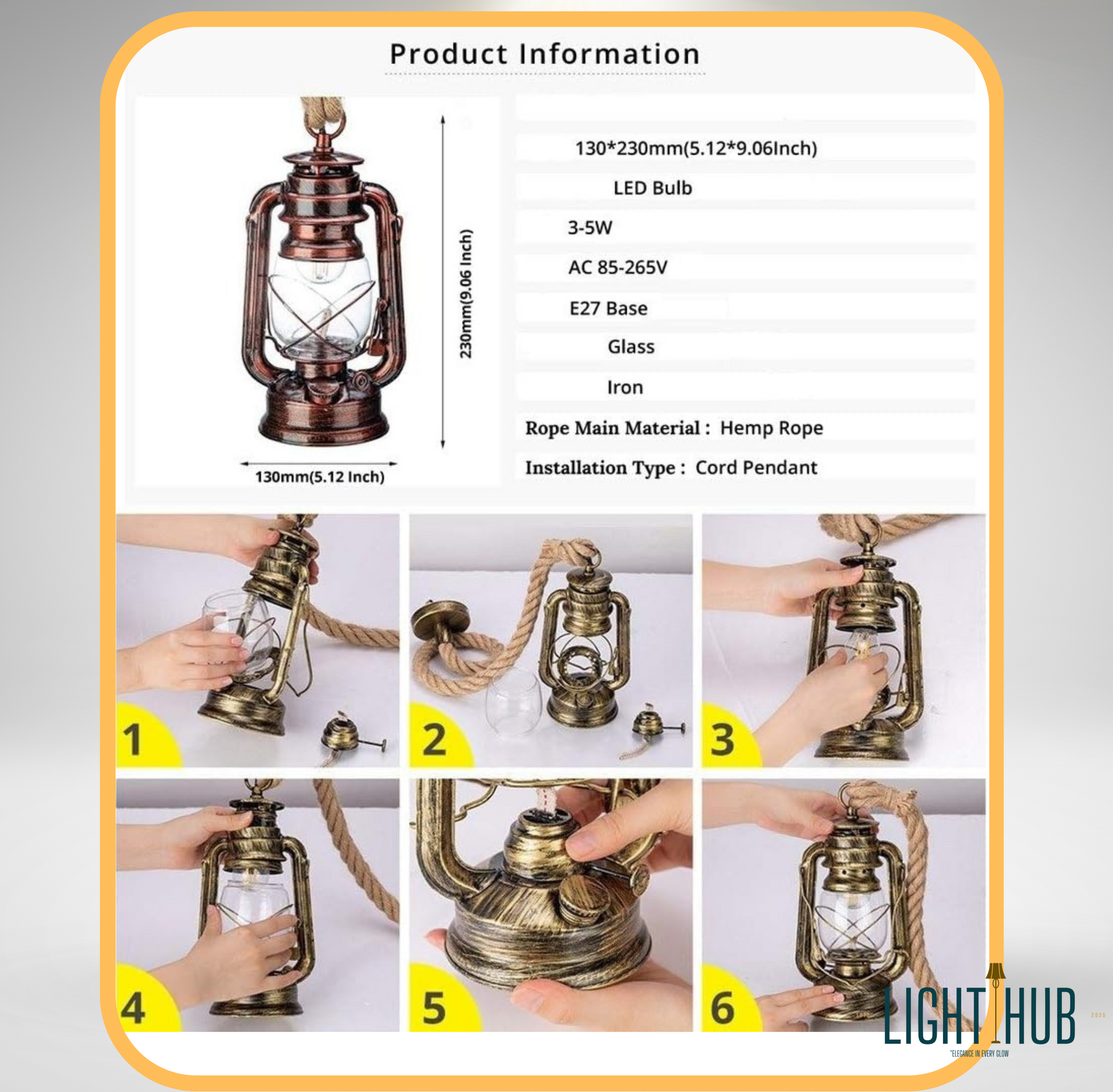 Apportez une touche de charme intemporel a votre interieur avec la lampe suspendue LUMORA. Son design retro inspire des anciennes lanternes est modernise par la compatibilite avec les ampoules LED haute performance alliant ainsi esthetique raffinee et efficacite energetique.