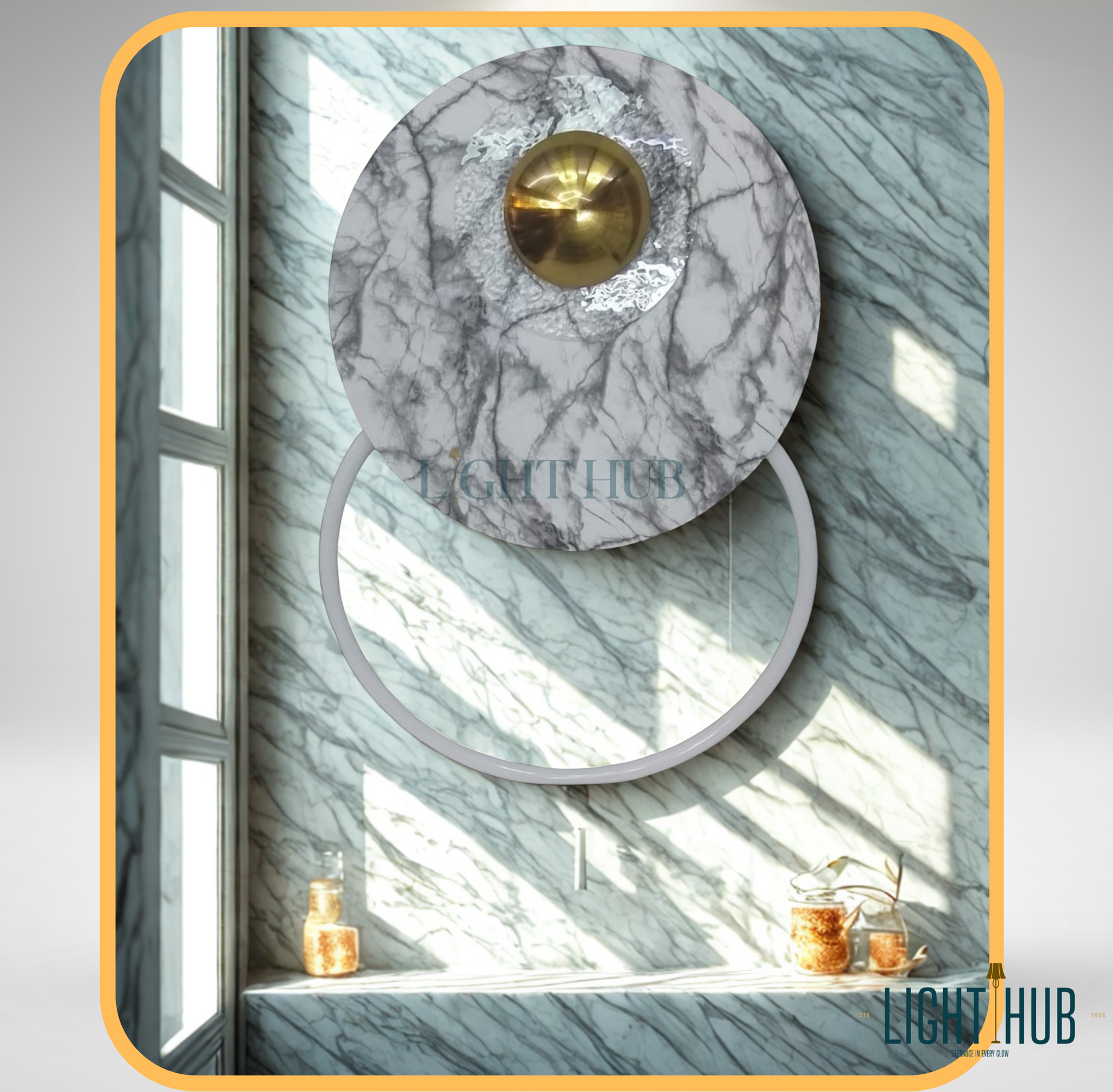 Apportez une touche sophistiquée à votre intérieur avec cette applique murale unique, alliant luxe et innovation. Son disque en effet marbre offre un design naturel et intemporel, tandis que son anneau LED lumineux traverse délicatement la pierre, créant un effet visuel élégant et moderne.