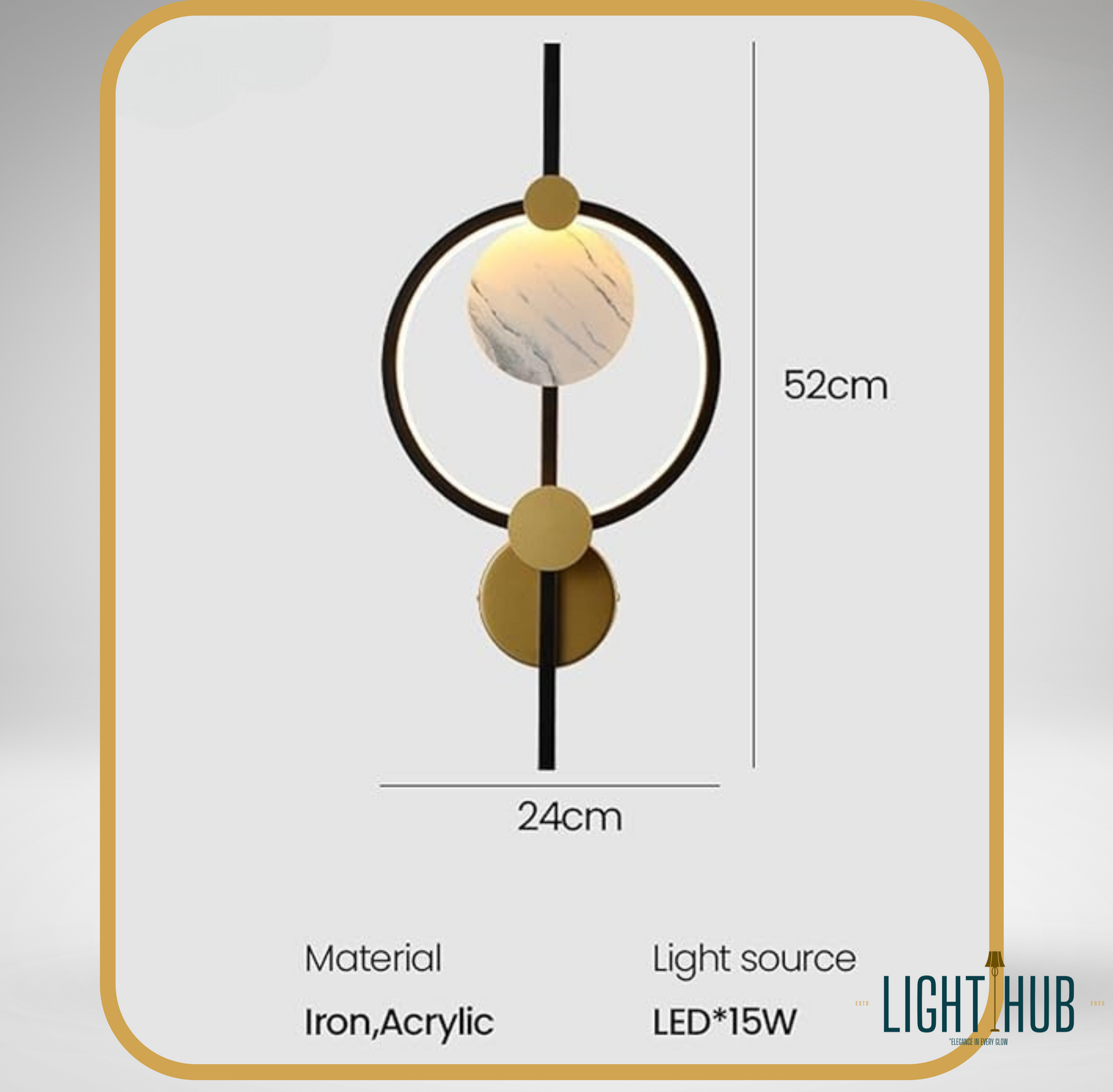 Couleur : Noir structure principale Dore Laiton accents Blanc marbre diffuseur central.