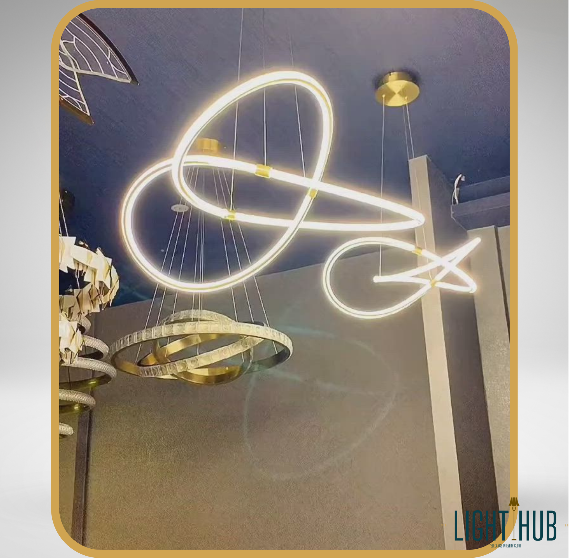 Decouvrez la suspension QUASAR un luminaire captivant qui fusionne l art et la lumiere pour creer une ambiance dynamique et moderne. Cette piece elegante se distingue par sa ou ses formes lumineuses entrelacees evoquent un mouvement continu et une creativite sans limites. Le design combine la purete d une lumiere blanche diffuse avec des accents dores et une base de plafond assortie apportant une touche de sophistication contemporaine a votre interieur.