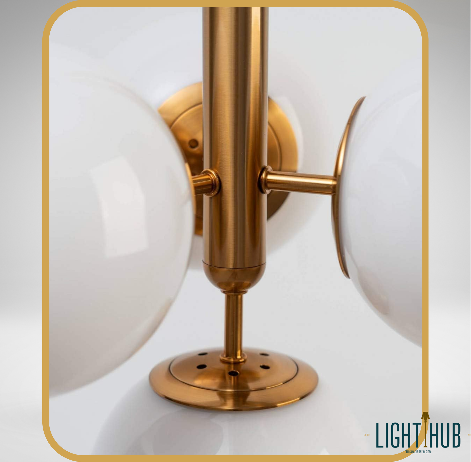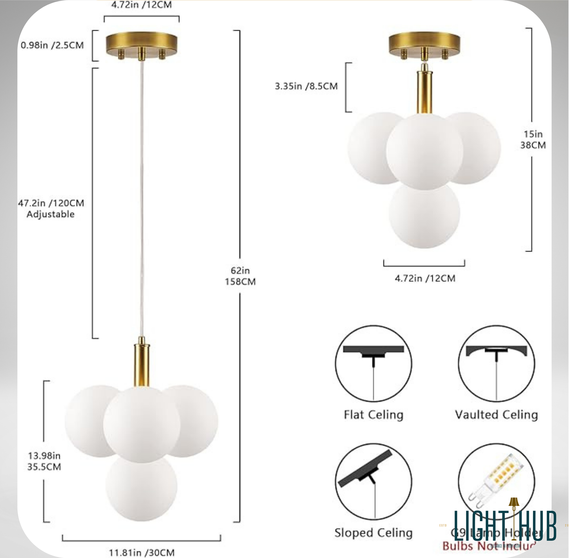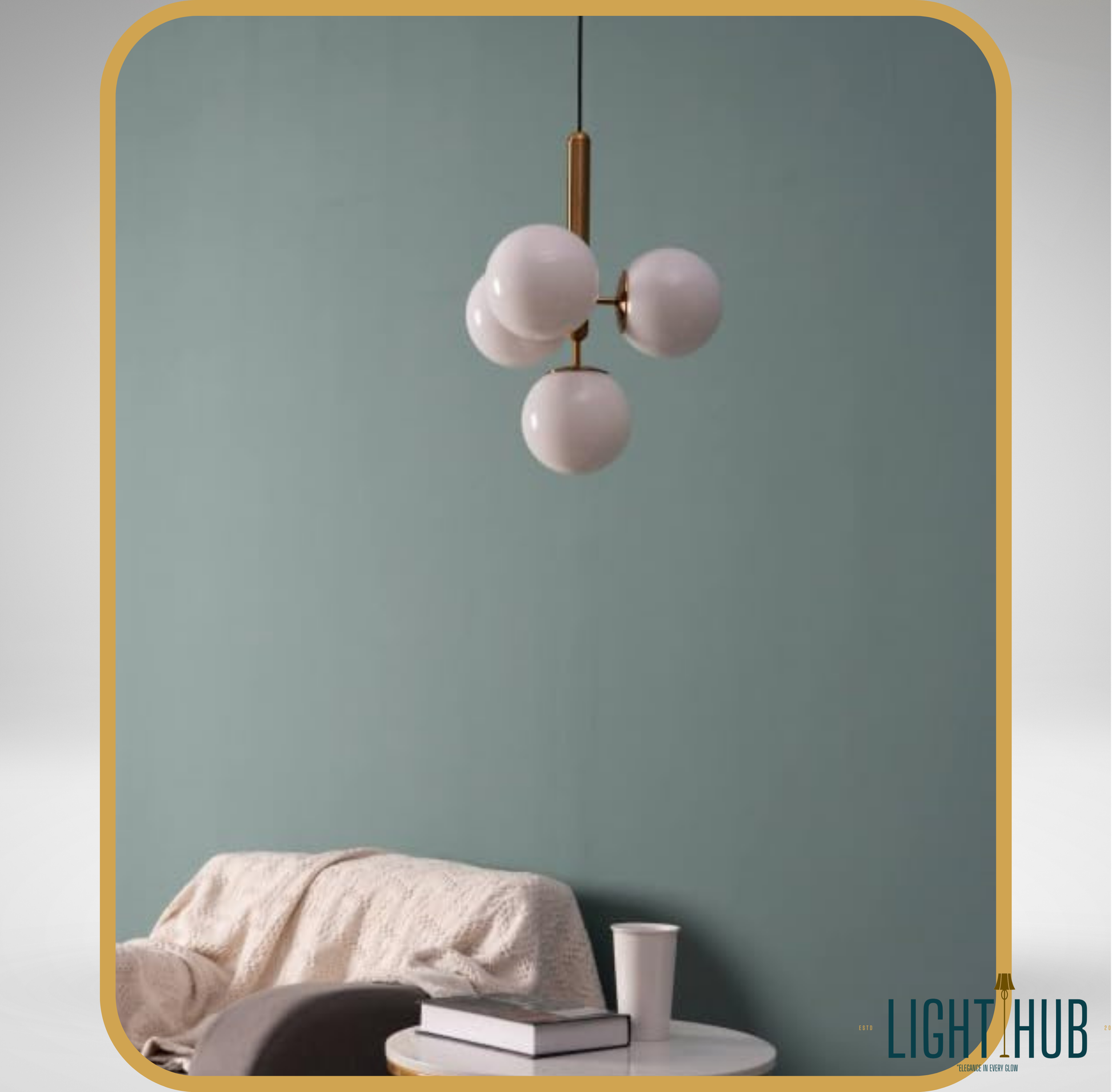 Apportez une touche d'élégance à votre intérieur avec cette suspension contemporaine composée de quatre globes en verre dépoli, harmonieusement regroupés. Soutenus par une tige en laiton doré, les globes diffusent une lumière chaude et accueillante, idéale pour créer une ambiance cosy dans un salon, une chambre ou un coin lecture. Son design minimaliste s'intègre parfaitement aux décors modernes, scandinaves ou inspirés du style mid-century. À la fois esthétique et fonctionnelle, cette suspension devient une véritable pièce maîtresse de votre décoration.